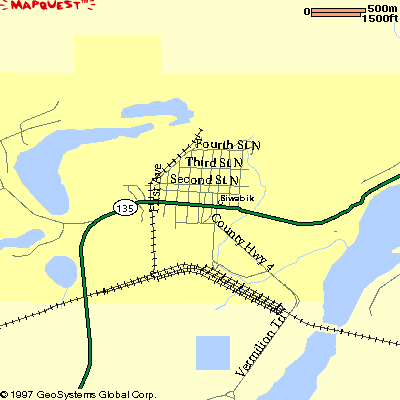 One of the few remaining Missabe depots is here, once the interchange with the Duluth and Northeastern. Highway 7 begins to parallel the Missabe mainline here, and can be followed to Keenan.